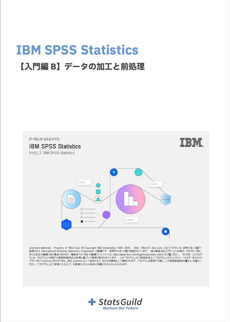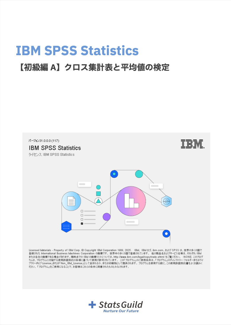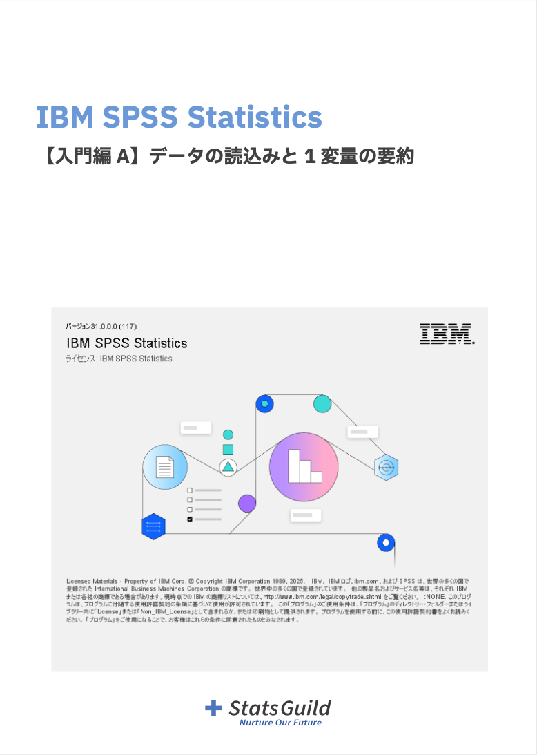医療看護・学術・ビジネス等の多くの分野で、統計分析、トレーニング、コンサルティングなどの20年以上の実績を持つ専門スタッフ達を中心に、大学の先生方の貴重なご助言も参考に制作している、スタッツギルドのオリジナルテキストブックです。