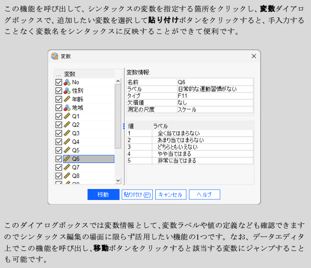 実際の操作画面のスクリーンショットが豊富にあり、SPSSを実際に操作しなくてもどのような操作をしていけば良いかがわかります。